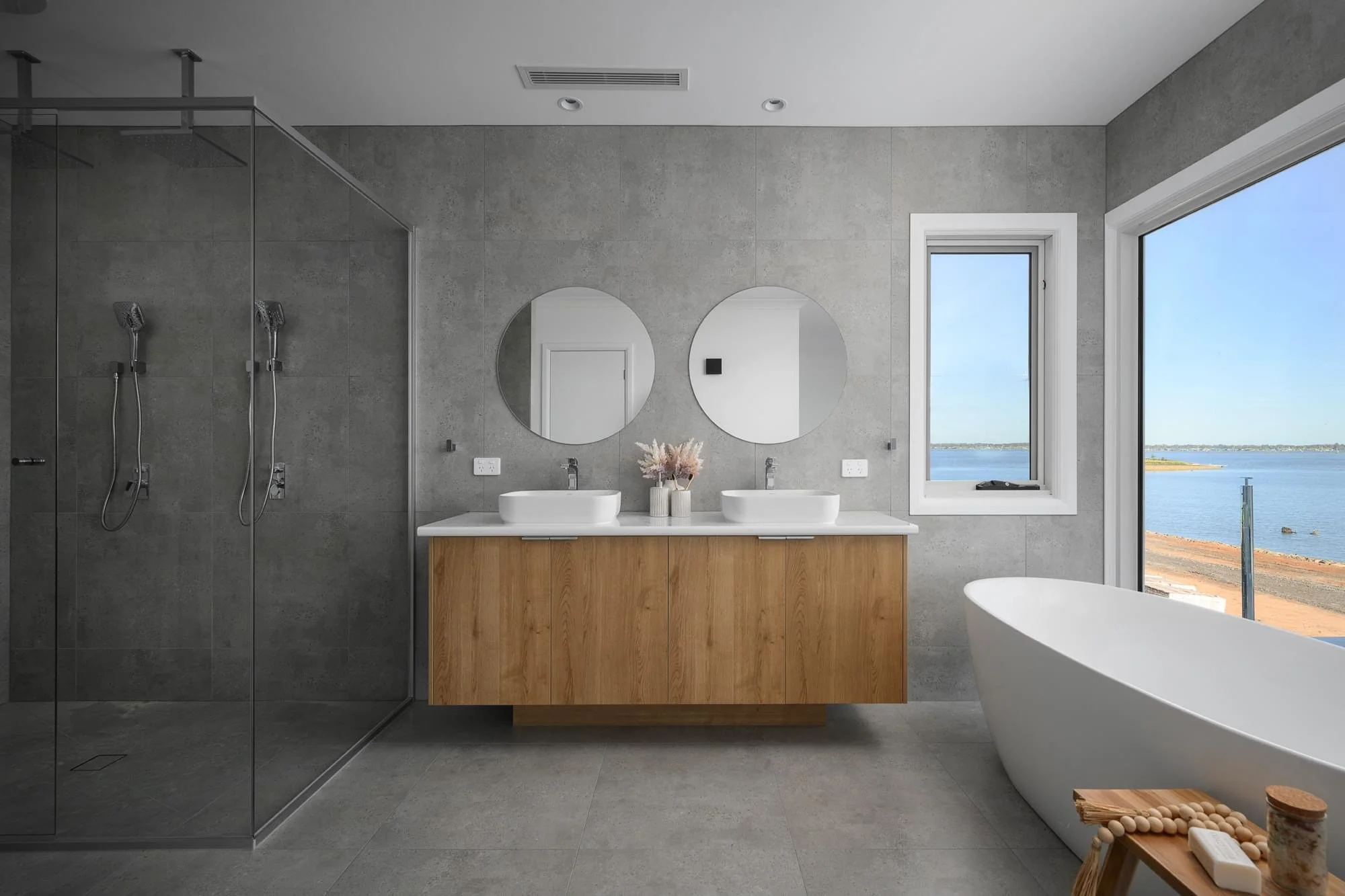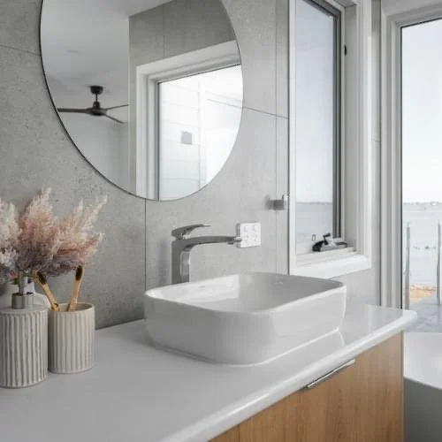 For this beautiful new build on the banks of Lake Mulwala, the clients were looking for a calming, timeless palette that would complement the serene surroundings. We worked together to select the perfect mix of neutral tones that add warmth and depth, creating a space that feels balanced and welcoming.